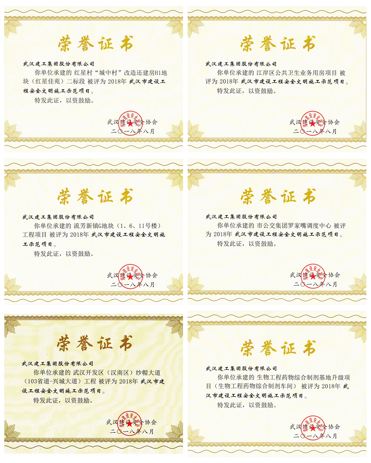 近日,武漢建設安全協會通報表彰“建筑施工安全生產標準化示范工地”,武漢建工有六個項目獲此殊榮,被授予“2018年上半年武漢市建設工程安全文明施工示范項目”(黃鶴杯)稱號。 六個獲獎項目分別為: