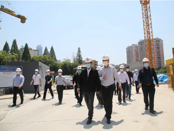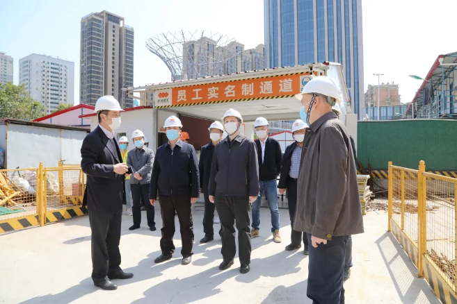 4月29日上午,武漢地鐵集團(tuán)董事長(zhǎng)、黨委書記張軍一行實(shí)地考察武漢建工集團(tuán)承建的武漢市軌道交通8號(hào)線趙家條配套綜合開發(fā)項(xiàng)目一期工程,并召開座談會(huì),了解項(xiàng)目疫情防控及復(fù)工復(fù)產(chǎn)情況。集團(tuán)董事長(zhǎng)、黨委書記應(yīng)志剛,集團(tuán)總經(jīng)理、黨委副書記王火生,集團(tuán)黨委副書記、紀(jì)委書記、總工程師王愛勛,股