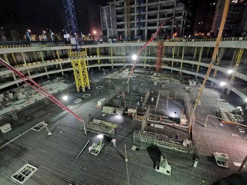 2019年5月5日凌晨一點,武漢建工總承包建設(shè)的武漢市軌道交通七號線一期三陽路風(fēng)塔配套綜合開發(fā)項目二期工程開始了11000立方米大體積混凝土澆筑施工作業(yè),預(yù)計四天完工。
