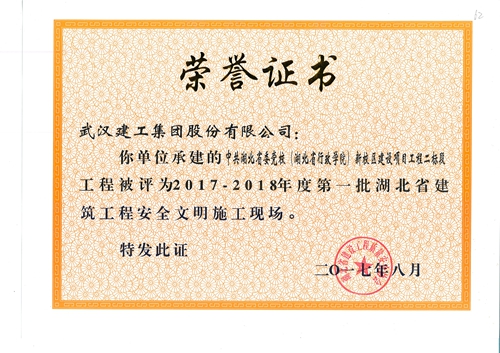 2017年,武漢建工集團進一步加強施工現(xiàn)場安全文明施工管理,取得顯著成效。日前,根據(jù)《湖北省建筑工程安全文明施工現(xiàn)場評審辦法》,湖北省建設(shè)工程質(zhì)量安全協(xié)會表彰了一批在湖北省安全文明施工中有重要貢獻的施工項目。集團“武漢亞洲醫(yī)院”等7個工程項目獲“2017-2018年度第一批湖北省建筑工程安全文明施工現(xiàn)場”榮譽證書。